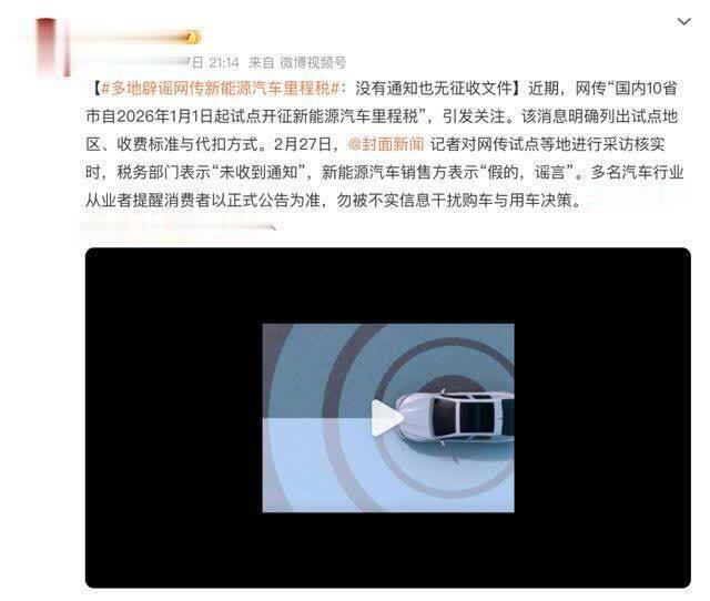 可能也是基于这样的焦虑或者“不爽”,有些假消息就应运而生了!之前在网上就出现了很多所谓“新能源里程税”的消息和图片,甚至还有细节解析,当然也有一说是“公路养护费”,针对2026年1月1日后上牌的新能源汽车征收该税费。而且还把试行的省市名称、收费标准、分级界限表述得清清楚楚,让很多小伙伴对这个消息信以为真,一个个担心买新能源汽车,一年跑10000公里,就要多花1200—1500元的额外费用,要知道大多数新能源车,一年10000公里的充电费用,也就2000块左右,这个费用“负担”就太重了。